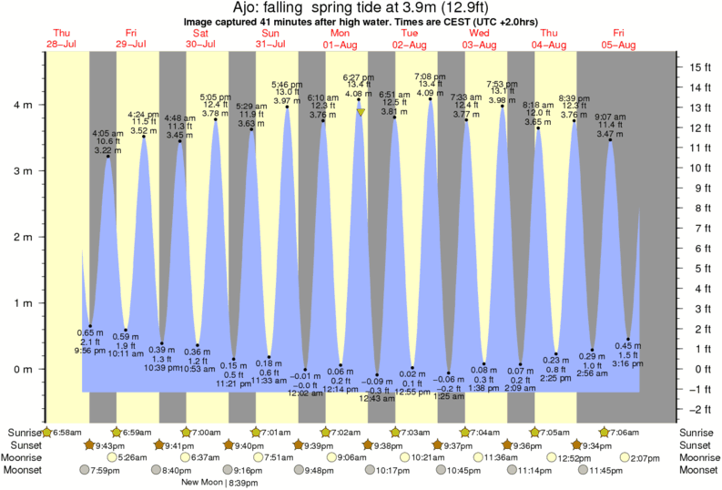 Image captured 41 minutes after high water (falling spring tide). Tide height was 3.9m (12.9 ft). Range 4.69m (15.4 ft). Toggle tide graph