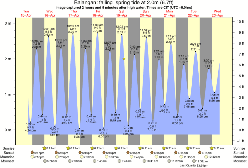 Image captured 2 hours and 9 minutes after high water (falling spring tide). Tide height was 2.0m (6.7 ft). Range 2.99m (9.8 ft). Toggle tide graph