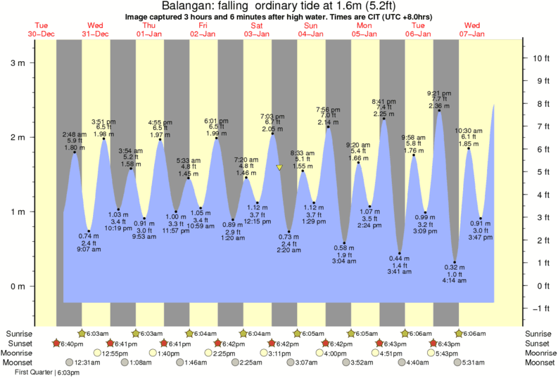 Image captured 3 hours and 6 minutes after high water (falling ordinary tide). Tide height was 1.6m (5.2 ft). Range 3.21m (10.5 ft). Toggle tide graph