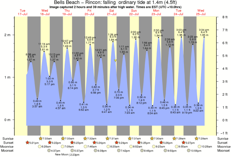 Forecast wind and swell just offshore from Bells Beach - Rincon around the time the photo was taken