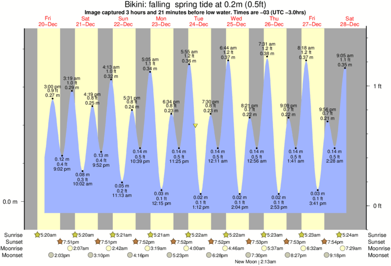 Forecast wind and swell just offshore from Bikini around the time the photo was taken