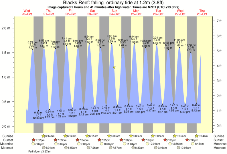 Image captured 2 hours and 41 minutes after high water (falling ordinary tide). Tide height was 1.2m (3.8 ft). Range 1.98m (6.5 ft). Toggle tide graph