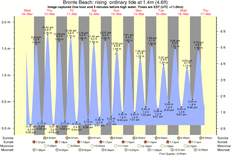 Forecast wind and swell just offshore from Bronte Beach around the time the photo was taken