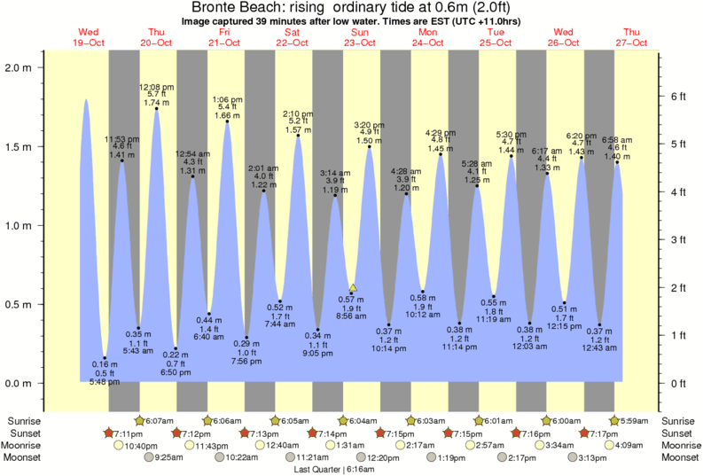 Forecast wind and swell just offshore from Bronte Beach around the time the photo was taken