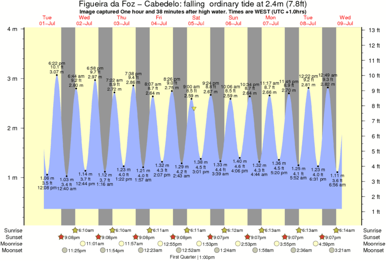 Image captured One hour and 38 minutes after high water (falling ordinary tide). Tide height was 2.4m (7.8 ft). Range 3.33m (10.9 ft). Toggle tide graph