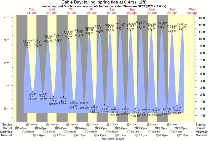 Image captured One hour and one minute before low water (falling spring tide). Tide height was 0.4m (1.2 ft). Range 3.91m (12.8 ft). Toggle tide graph