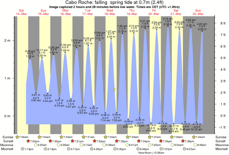 Forecast wind and swell just offshore from Cabo Roche around the time the photo was taken