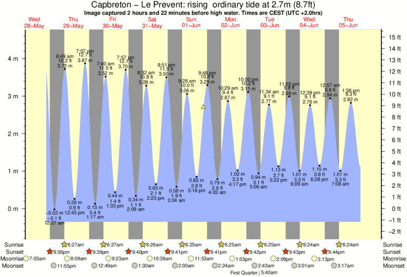 Image captured 2 hours and 22 minutes before high water (rising ordinary tide). Tide height was 2.7m (8.7 ft). Range 4.66m (15.3 ft). Toggle tide graph