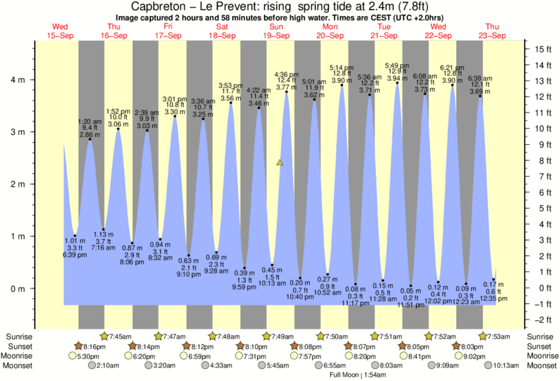Image captured 2 hours and 58 minutes before high water (rising spring tide). Tide height was 2.4m (7.8 ft). Range 4.61m (15.1 ft). Toggle tide graph
