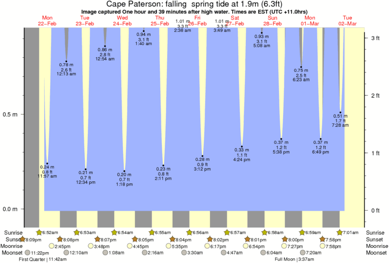 Image captured One hour and 39 minutes after high water (falling spring tide). Tide height was 1.9m (6.3 ft). Range 0.88m (2.9 ft). Toggle tide graph