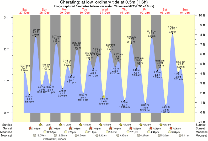 Forecast wind and swell just offshore from Cherating around the time the photo was taken
