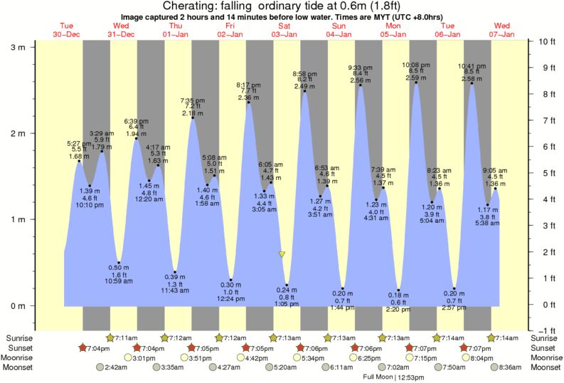 Forecast wind and swell just offshore from Cherating around the time the photo was taken