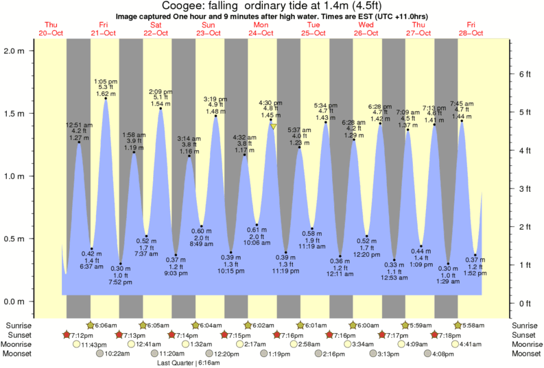 Image captured One hour and 9 minutes after high water (falling ordinary tide). Tide height was 1.4m (4.5 ft). Range 1.86m (6.1 ft). Toggle tide graph