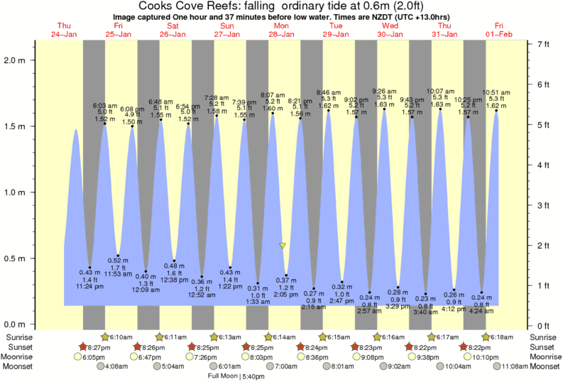 Forecast wind and swell just offshore from Cooks Cove Reefs around the time the photo was taken
