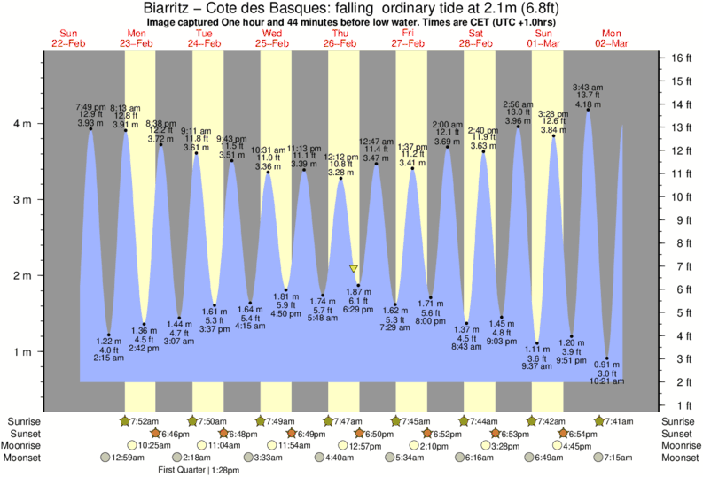 Forecast wind and swell just offshore from Biarritz - Cote des Basques around the time the photo was taken