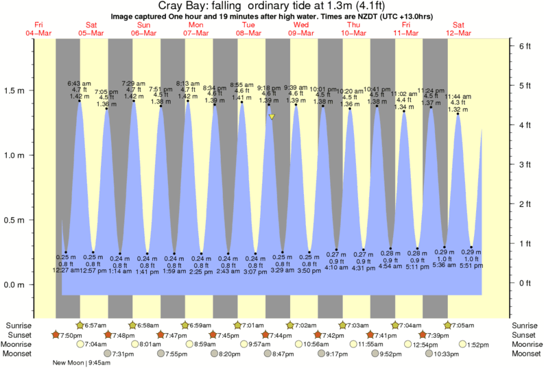 Image captured One hour and 19 minutes after high water (falling ordinary tide). Tide height was 1.3m (4.1 ft). Range 1.80m (5.9 ft). Toggle tide graph