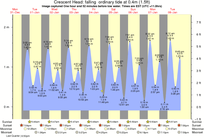 Image captured One hour and 52 minutes before low water (falling ordinary tide). Tide height was 0.4m (1.5 ft). Range 2.19m (7.2 ft). Toggle tide graph