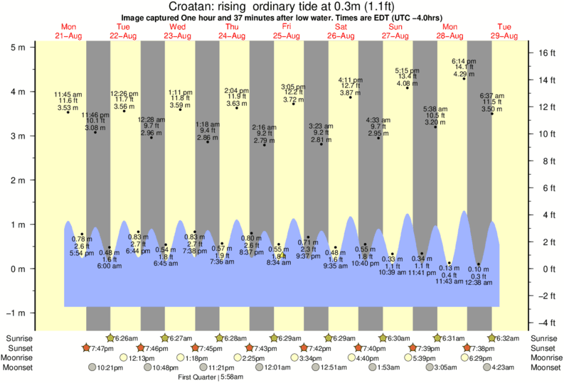 Image captured One hour and 37 minutes after low water (rising ordinary tide). Tide height was 0.3m (1.1 ft). Range 5.46m (17.9 ft). Toggle tide graph