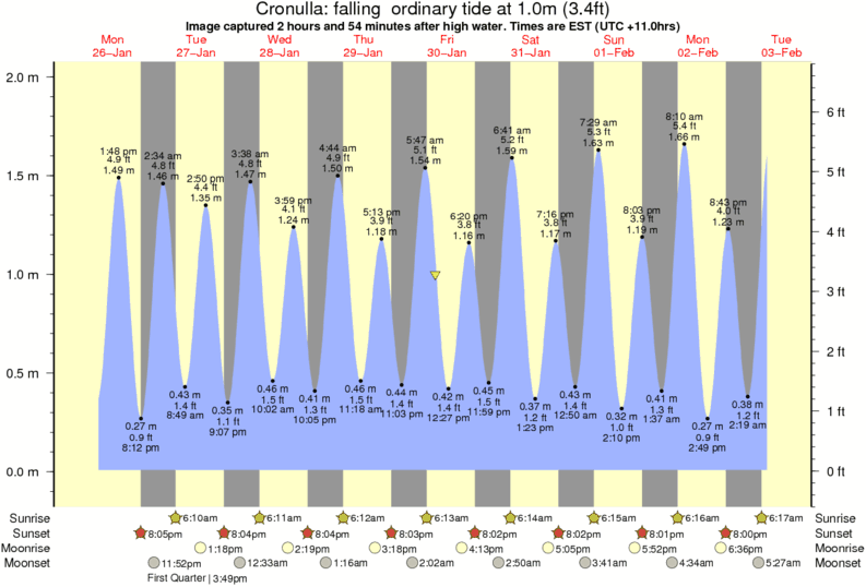 Image captured 2 hours and 54 minutes after high water (falling ordinary tide). Tide height was 1.0m (3.4 ft). Range 1.88m (6.2 ft). Toggle tide graph