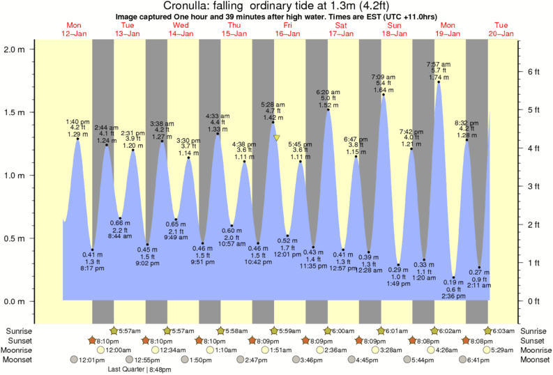 Image captured One hour and 39 minutes after high water (falling ordinary tide). Tide height was 1.3m (4.2 ft). Range 1.88m (6.2 ft). Toggle tide graph