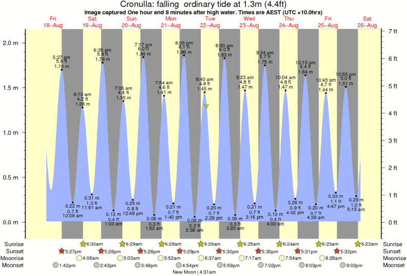 Image captured One hour and 8 minutes after high water (falling ordinary tide). Tide height was 1.3m (4.4 ft). Range 1.95m (6.4 ft). Toggle tide graph