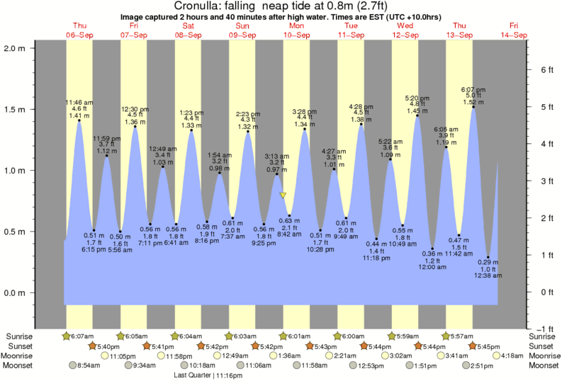 Image captured 2 hours and 40 minutes after high water (falling neap tide). Tide height was 0.8m (2.7 ft). Range 1.97m (6.5 ft). Toggle tide graph