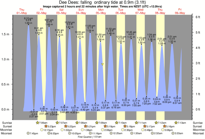 Image captured 2 hours and 22 minutes after high water (falling ordinary tide). Tide height was 0.9m (3.1 ft). Range 1.75m (5.7 ft). Toggle tide graph