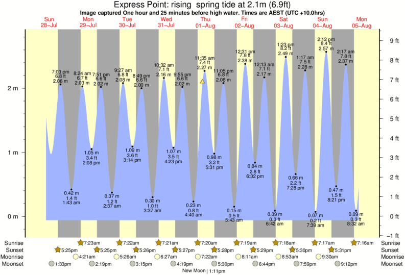 Image captured One hour and 25 minutes before high water (rising spring tide). Tide height was 2.1m (6.9 ft). Range 2.71m (8.9 ft). Toggle tide graph