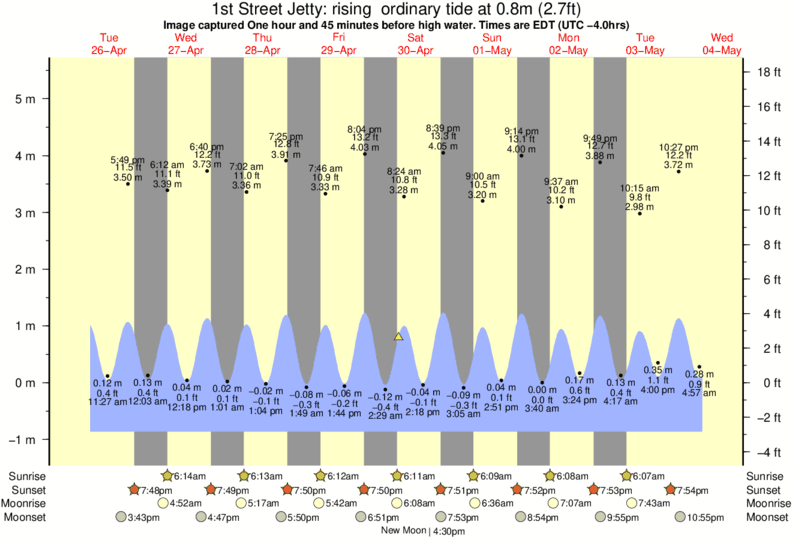 Forecast wind and swell just offshore from 1st Street Jetty around the time the photo was taken