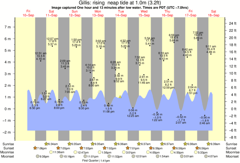 Image captured One hour and 13 minutes after low water (rising neap tide). Tide height was 1.0m (3.2 ft). Range 8.81m (28.9 ft). Toggle tide graph