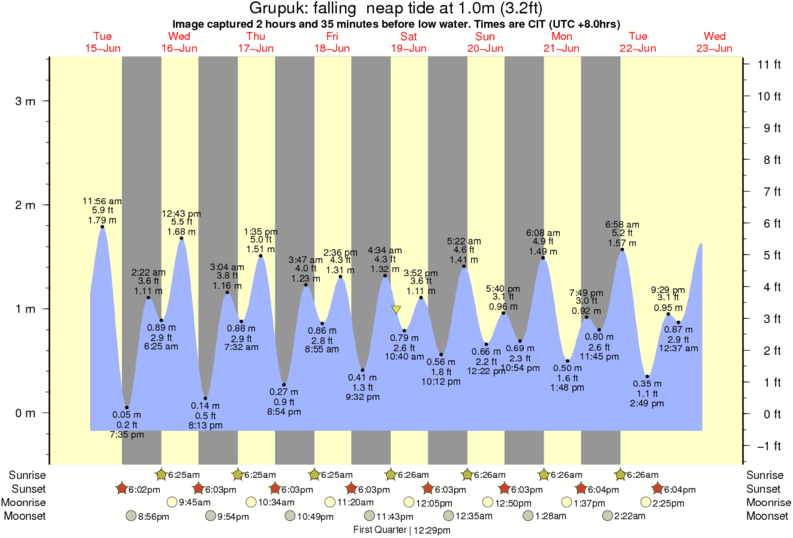 Image captured 2 hours and 35 minutes before low water (falling neap tide). Tide height was 1.0m (3.2 ft). Range 3.27m (10.7 ft). Toggle tide graph
