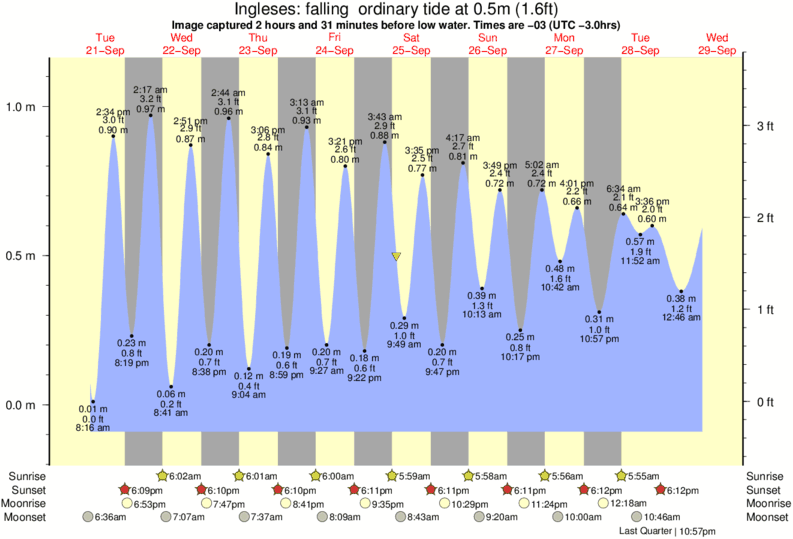 Image captured 2 hours and 31 minutes before low water (falling ordinary tide). Tide height was 0.5m (1.6 ft). Range 1.14m (3.7 ft). Toggle tide graph