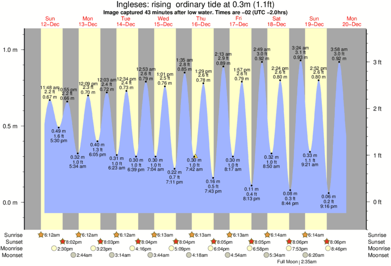 Image captured 43 minutes after low water (rising ordinary tide). Tide height was 0.3m (1.1 ft). Range 1.10m (3.6 ft). Toggle tide graph