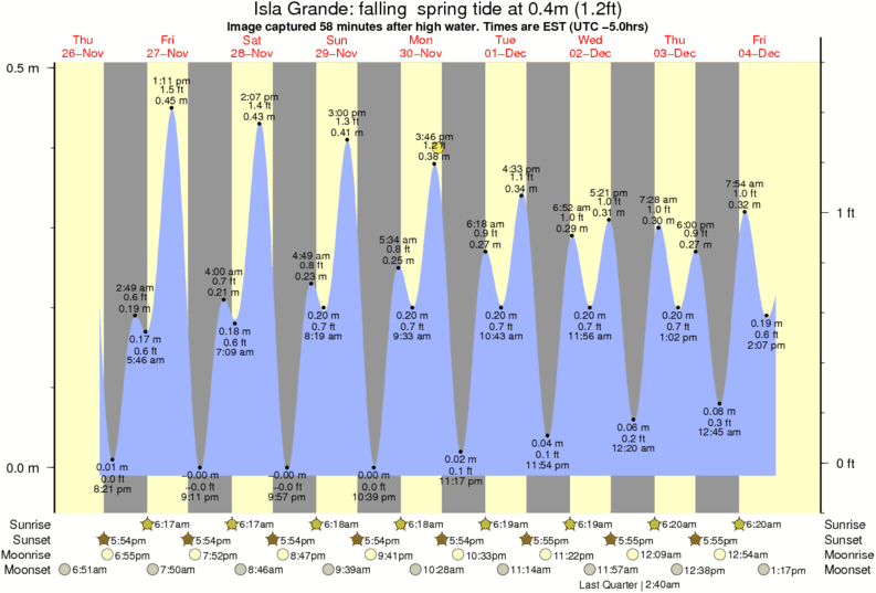 Image captured 58 minutes after high water (falling spring tide). Tide height was 0.4m (1.2 ft). Range 0.47m (1.5 ft). Toggle tide graph