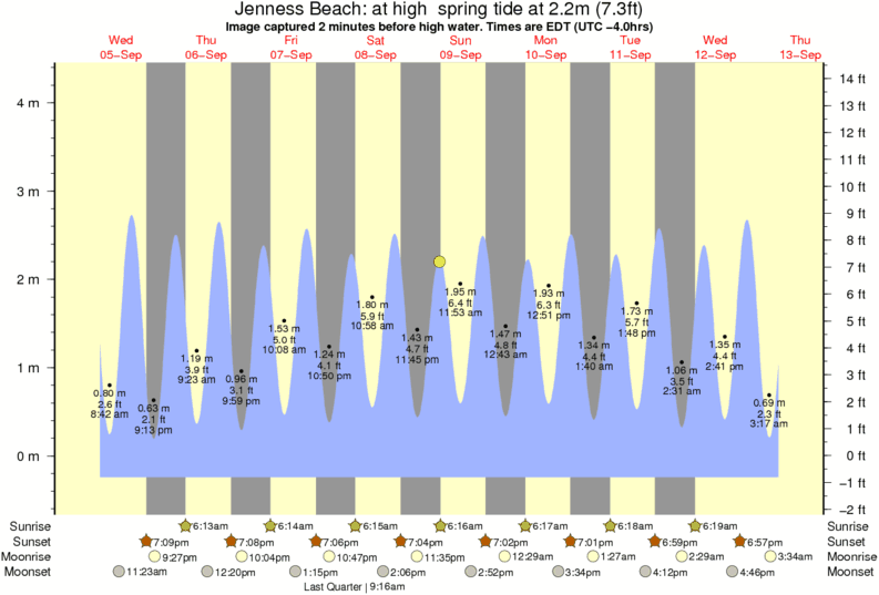 Image captured 2 minutes before high water (at high spring tide). Tide height was 2.2m (7.3 ft). Range 4.27m (14.0 ft). Toggle tide graph