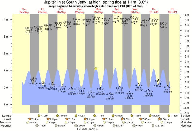 Forecast wind and swell just offshore from Jupiter Inlet South Jetty around the time the photo was taken