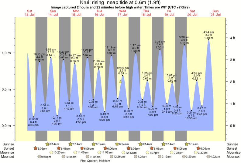 Image captured 2 hours and 22 minutes before high water (rising neap tide). Tide height was 0.6m (1.9 ft). Range 1.42m (4.7 ft). Toggle tide graph