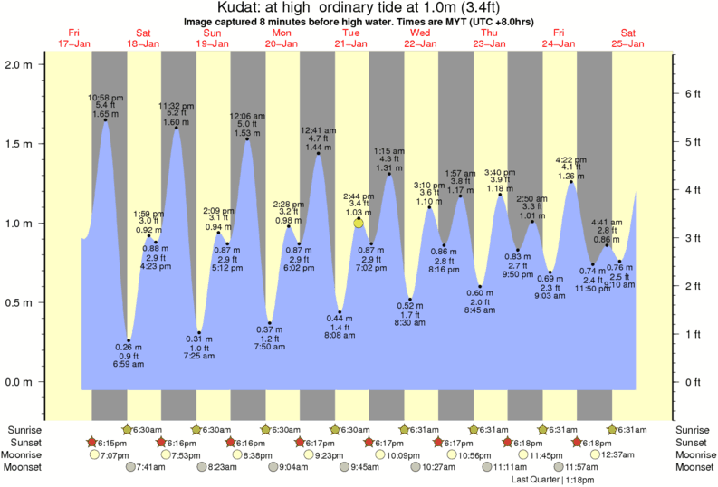 Image captured 8 minutes before high water (at high ordinary tide). Tide height was 1.0m (3.4 ft). Range 1.94m (6.4 ft). Toggle tide graph