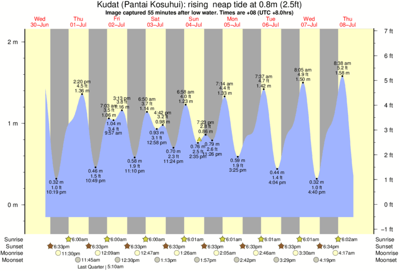 Image captured 55 minutes after low water (rising neap tide). Tide height was 0.8m (2.5 ft). Range 2.10m (6.9 ft). Toggle tide graph