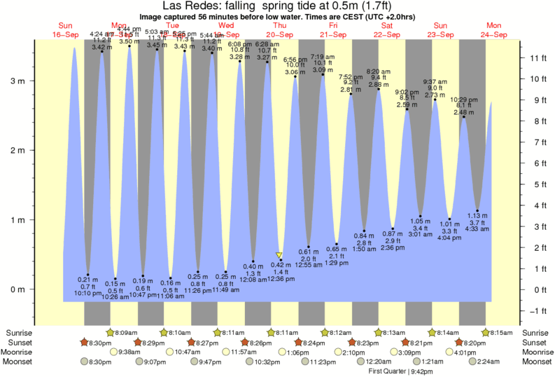 Image captured 56 minutes before low water (falling spring tide). Tide height was 0.5m (1.7 ft). Range 3.43m (11.3 ft). Toggle tide graph