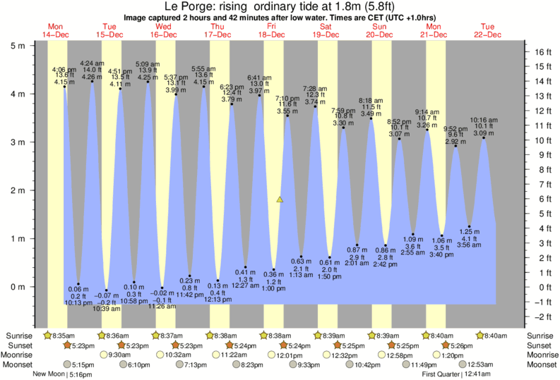 Image captured 2 hours and 42 minutes after low water (rising ordinary tide). Tide height was 1.8m (5.8 ft). Range 4.97m (16.3 ft). Toggle tide graph