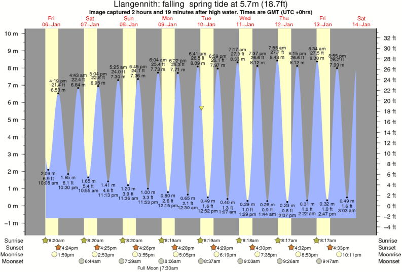 Image captured 2 hours and 19 minutes after high water (falling spring tide). Tide height was 5.7m (18.7 ft). Range 10.00m (32.8 ft). Toggle tide graph