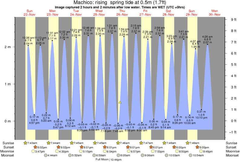 Image captured 2 hours and 2 minutes after low water (rising spring tide). Tide height was 0.5m (1.7 ft). Range 2.76m (9.1 ft). Toggle tide graph