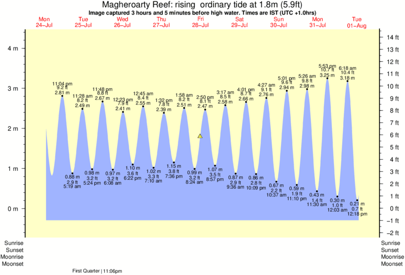 Forecast wind and swell just offshore from Magheraroarty Reef around the time the photo was taken
