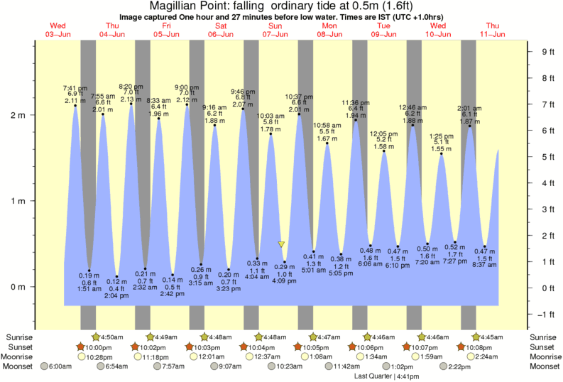 Image captured One hour and 27 minutes before low water (falling ordinary tide). Tide height was 0.5m (1.6 ft). Range 2.81m (9.2 ft). Toggle tide graph