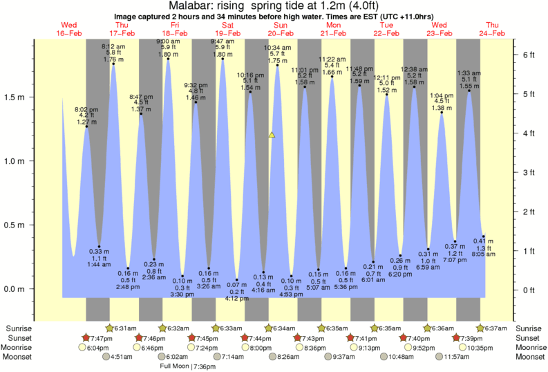 Image captured 2 hours and 34 minutes before high water (rising spring tide). Tide height was 1.2m (4.0 ft). Range 1.84m (6.0 ft). Toggle tide graph