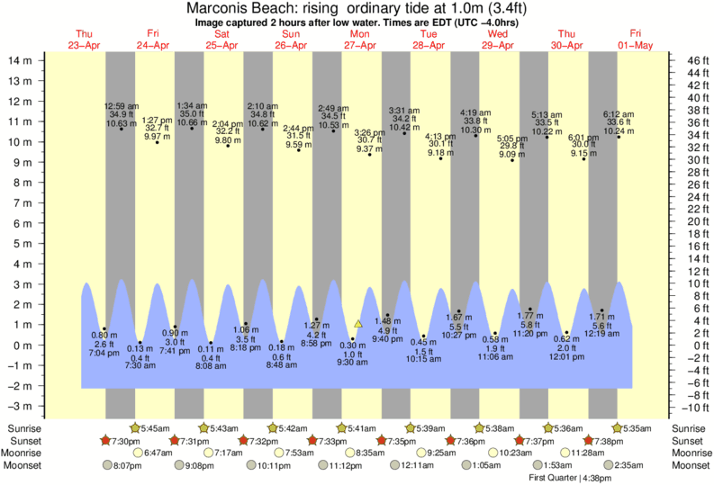 Image captured 2 hours after low water (rising ordinary tide). Tide height was 1.0m (3.4 ft). Range 15.06m (49.4 ft). Toggle tide graph
