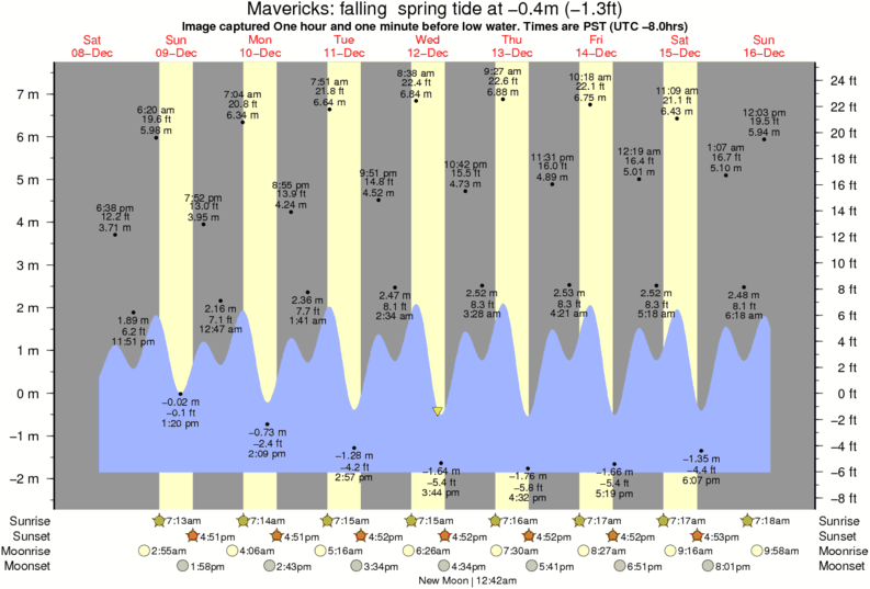 Forecast wind and swell just offshore from Mavericks around the time the photo was taken
