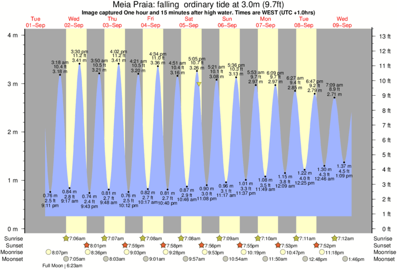 Forecast wind and swell just offshore from Meia Praia around the time the photo was taken