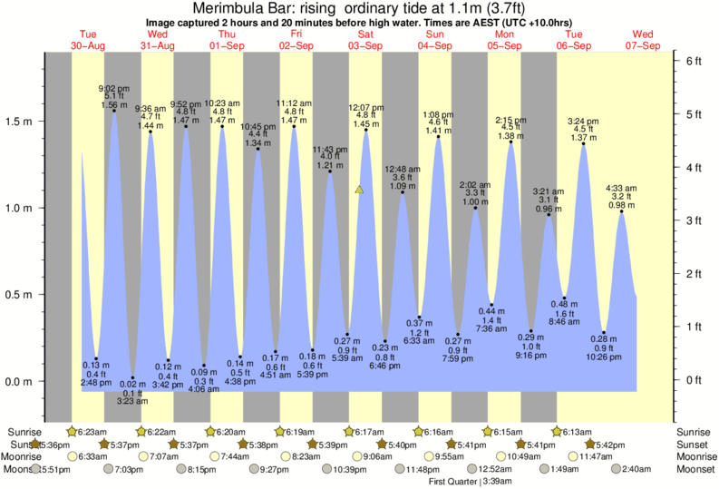 Image captured 2 hours and 20 minutes before high water (rising ordinary tide). Tide height was 1.1m (3.7 ft). Range 1.78m (5.8 ft). Toggle tide graph